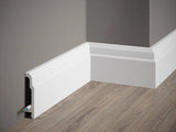 Die MD363 Sockelleiste ist ein Profil, das sowohl zu rustikalen als auch modernen Innenräumen passt. Mit einer Tiefe von 2,3 cm kann sie effektiv breitere Dehnungsfugen abdecken. Das durchdachte Design berücksichtigt das Bedürfnis der Nutzer, Haushaltskabel ästhetisch zu verbergen. Zu diesem Zweck hat die Sockelleiste einen dafür vorgesehenen Raum. Die MD363 wurde aus PolyForce-Material gefertigt, das wasser- und UV-beständig ist. Die Sockelleiste stößt Wassermoleküle ab, sodass sie weder aufquillt noch sich im Laufe der Zeit verformt. Sonnenlicht führt nicht zu Vergilbungen oder Farbveränderungen. Die Sockelleiste verfügt über die patentierte ScratchShield-Technologie, die das Material weiter verstärkt, die Oberfläche härter macht und vor jeglichen Beschädigungen schützt.