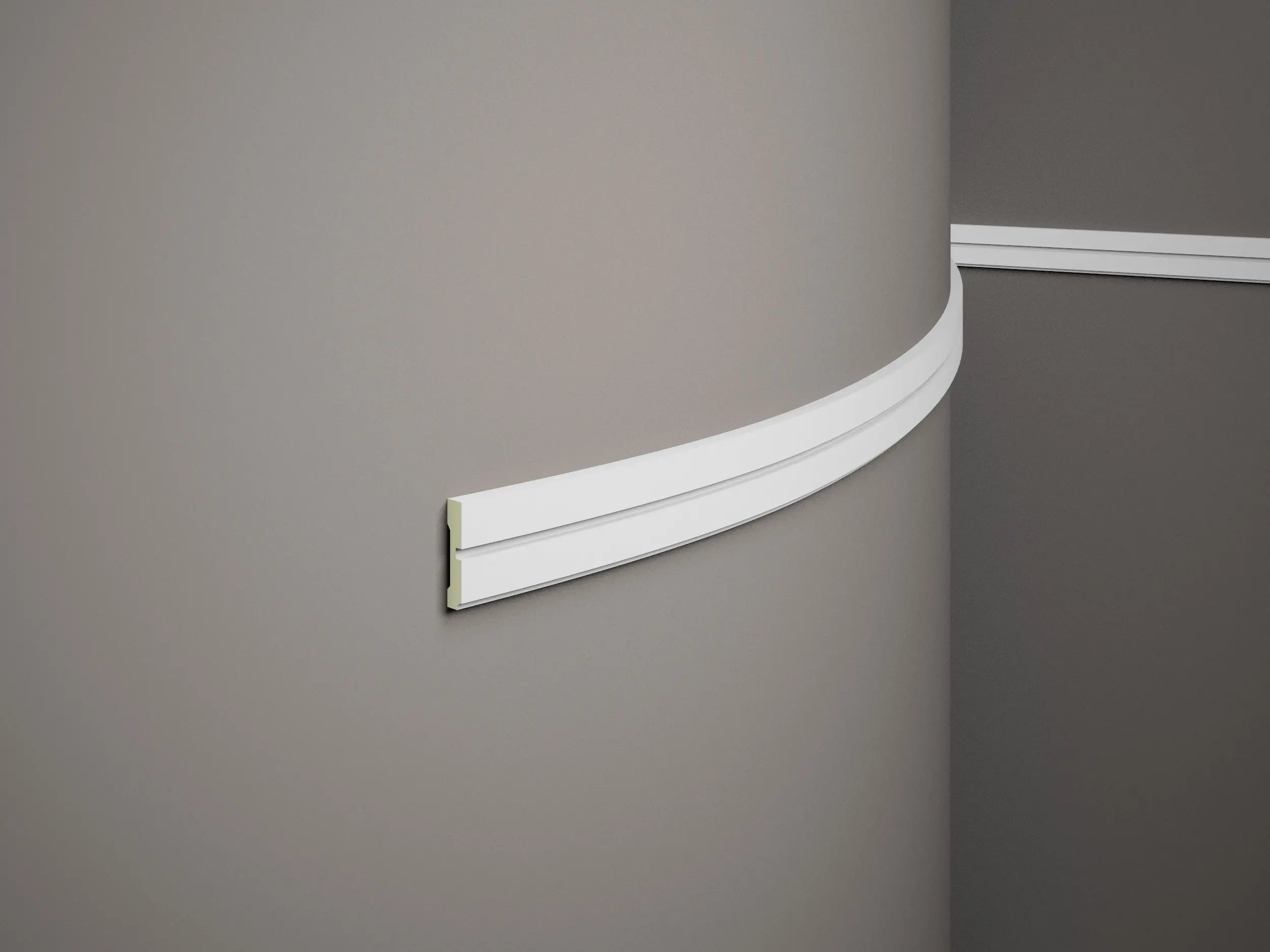 Modernes glattes und zeitloses Wandleisten Design. Diese biegsame und flexible Wandleiste ist ein wirklicher Augenschmaus. Runde oder ungerade Wände sind für diesen Bestseller kein Problem. Die Leiste für die Wand wird einfach verklebt und anschließend gestrichen. Also kein aufwendiger Montageprozess.