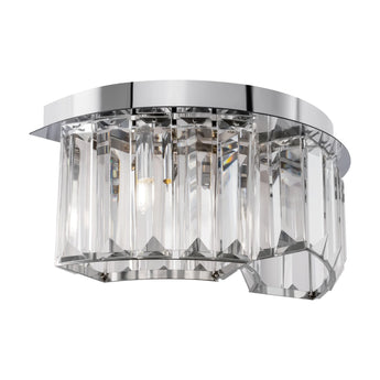 Asymmetrisches Design. Unterschiedlich hohe, glanzpolierte Glaselemente bilden eine harmonische Kolonnade, die durch einen Reflektor verbunden wird.