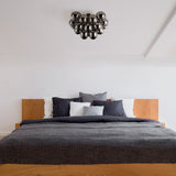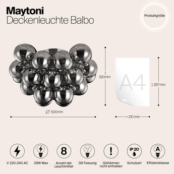 Metallbeschläge in Nickel. Lampenschirme aus transparentem Glas in zwei Farbtönen: Rauch und Cognac. Lichtquelle: Leuchtmittel mit einer Fassung G9.