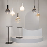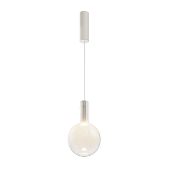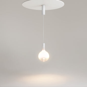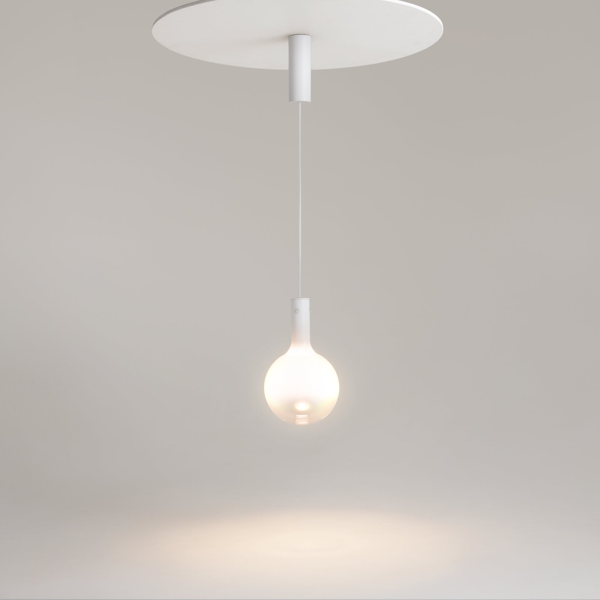 Metallbeschläge, Farbe Schwarz, Weiß. Geblasener KugelLampenschirm aus Glas mit langgestrecktem zylindrischem Sockel in drei Farben: Rauchschwarz, Nebelweiß. LEDLichtquelle im Sockel des Lampenschirms. Farbtemperatur 3000К. Zwei Lampenschirmdurchmesser und einstellbare Kabellänge ermöglichen, eine Vielzahl von Kompositionen zu gestalten