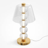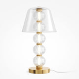 Metallbeschläge in Gold. Akzentdekor in Form von geprägten Kugeln aus Gussglas. Lichtquelle: LED-Lichtband, verdeckt unter einem Acryl-Diffusor. Pendelleuchten mit einstellbarer Höhe.