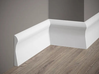Die Premium-Sockelleiste QS003P ist ein modernes Design - sowohl in ästhetischer als auch in praktischer Hinsicht. Die Sockelleiste fügt sich nicht nur dank ihrer universellen Form, sondern auch dank ihrer Höhe von 12,8 cm, deren Proportionen perfekt in die meisten Wohnungen und Häuser passen, wunderbar in verschiedene Einrichtungsstile ein. Die Sockelleisten der Premium-Kollektion sind ein Produkt für Kunden, die höchste Ansprüche an die Ästhetik des Innenausbaus stellen. Die makellos glatte, seidige und satinierte Beschichtung, mit der die Sockelleiste überzogen ist, verleiht ihr ein unglaublich luxuriöses Aussehen, das sich automatisch auf die Wahrnehmung des gesamten Innenraums auswirkt. Die Leiste verfügt über die innovative ScratchShield-Technologie, die eine maximale Oberflächenhärtung beinhaltet und die Mardom Decor Leisten zu den widerstandsfähigsten Polymerleisten auf dem Markt macht. Die Fußbodenleiste QS003P aus der Premium Collection ist ein vollständig wasserdichtes Profil, so dass sie in Badezimmern und allen Nassbereichen verlegt werden kann.