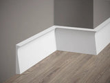 Die Sockelleiste QS004 ist ein Designerprofil mit asymmetrischen Formen. Sie zeichnet sich nicht nur durch ein ungewöhnliches Aussehen, sondern auch durch eine hochwertige Verarbeitung aus. Die Sockelleiste wurde aus innovativem PolyForce-Kunststoff hergestellt. Dieses Material ist sonnenbeständig – unter dem Einfluss intensiver UV-Strahlung verfärbt sich die Leiste nicht und reißt nicht, und es ist auch feuchtigkeitsbeständig – Wasser verursacht kein Aufquellen und keine Verformung der Oberfläche. QS004 wurde mit der patentierten ScratchShield-Technologie hergestellt, dank der die Sockelleiste eine außergewöhnliche Haltbarkeit erhält und widerstandsfähig gegen mechanische Beschädigungen wird. Die Sockelleiste ist mit einer Grundierung beschichtet, die die Oberfläche optimal auf das Streichen mit wasserbasierter Farbe vorbereitet.